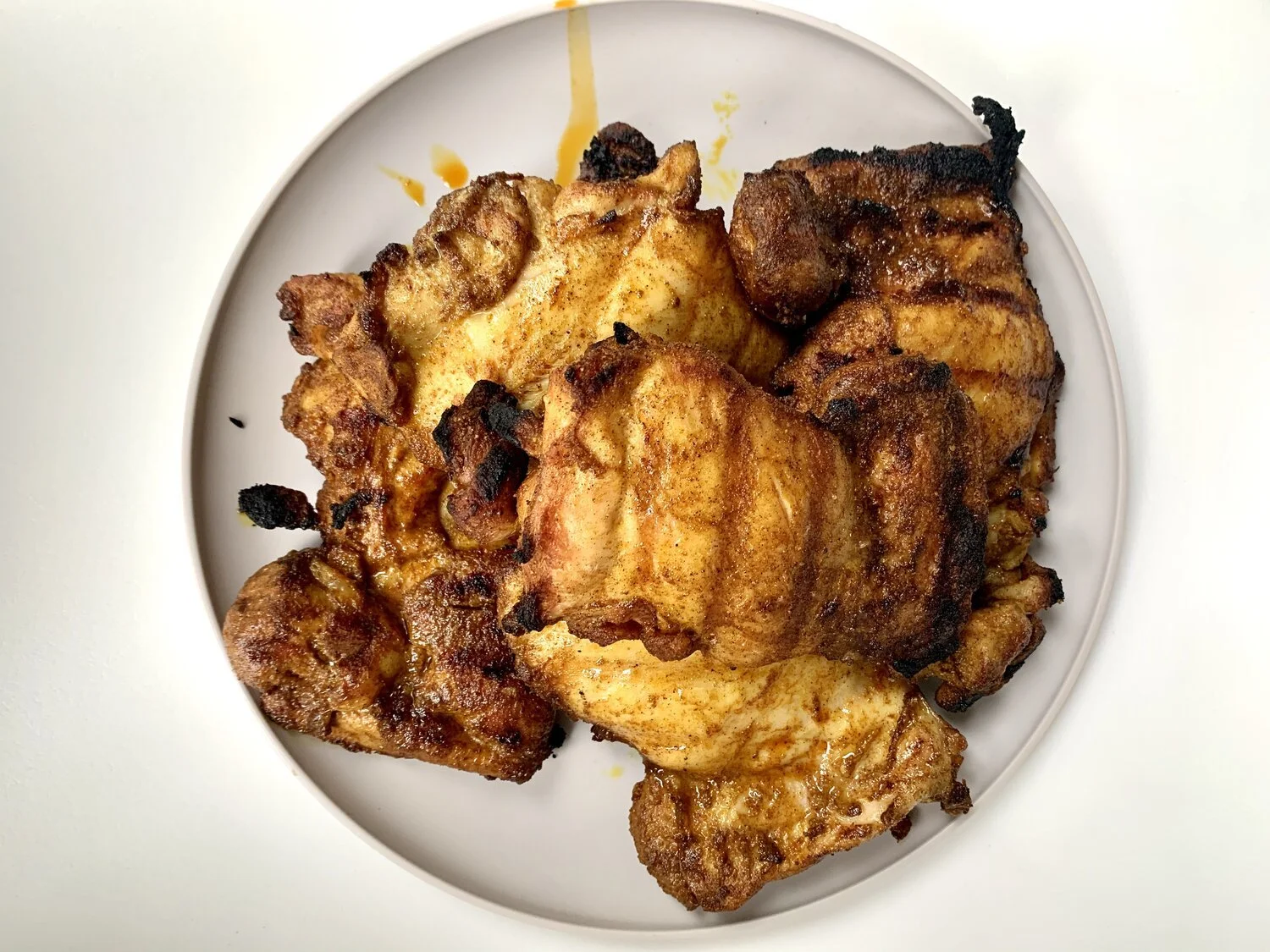 1.5-2 LBS. CHICKEN // I fiercely recommend boneless skinless thighs for this. Breasts are fine but more likely to dry out. (If you’re interested, use the spice mixture for pork. It’s a delight on a tenderloin or chops. Just cook it like you’d cook pork, not according to these directions.) Salt the chicken before adding it to the spice and oil.